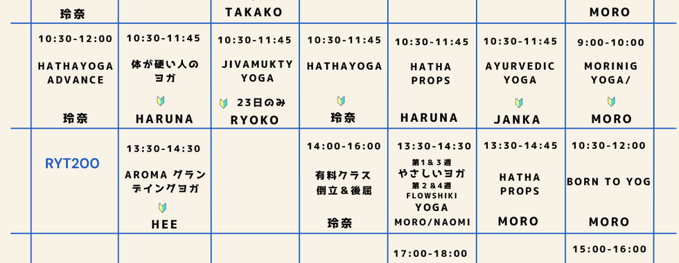 ※玲奈先生が11/29~12/14までインド修行に行かれるので、クラススケジュールや時間が変更しております。予約時、お間違いのないようにご確認下さい。